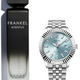 Assaf Combo – FRANKEL Aventus Perfume + Stainless-Steel Watch (Ice-Blue Dial) | طقم أساف — عطر فرانكل أفنتوس + ساعة ستانلس بميناء أزرق ثلجي
